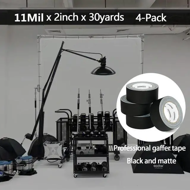 2" x 30yds- 4pack- black gaffers tape 2 inch can be used for a long time - Made in a beautiful Matte Black Vinyl Non-Reflective Finish.