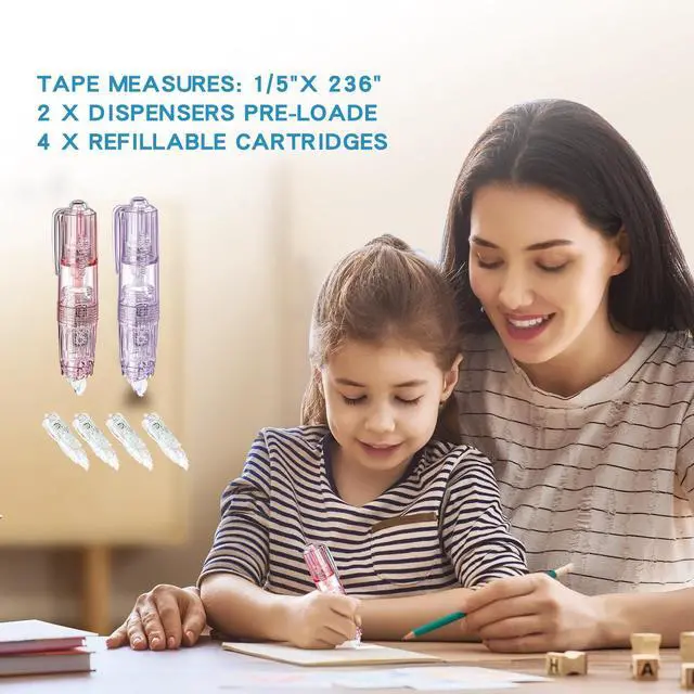 Refillable & Eco-Friendly Design: This set includes 2 correction tapes and 4 refill cartridges, allowing you to swap out the tape effortlessly for extended use. This cost-effective and eco-conscious design minimizes waste while maximizing convenience. Equipped with a dual-gear mechanism, ensuring smooth and consistent tape dispensing