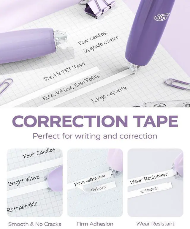 | 4 Correction Tape + 4 Refills | 12PCS | 1PCS | 36PCS | 12PCS | 14PCS | 5PCS |