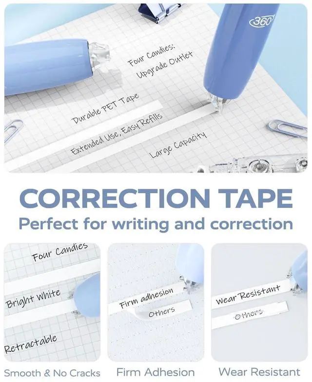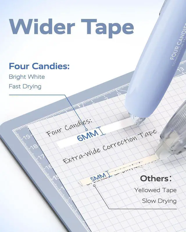 The rotating head of four candies correction tape adapts to any angle—ideal for left-handed users, spiral-bound notebooks, or curved edges. It ensures seamless application without skips or breaks, even in awkward positions.
