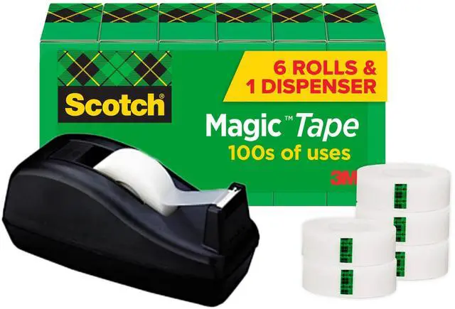 • INVISIBLE TAPE: 6 rolls of Scotch Magic Tape and 1 tape dispenser, mends rips and tears in college essentials, like notebooks, securely, permanently and invisibly