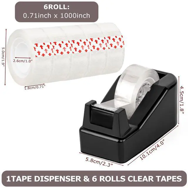 Desktop Tape Dispenser Black with Weighted Nonskid Base - Includes 6 Rolls of Transparent Tape ( 0.71 Inch x 1000 inches Each)