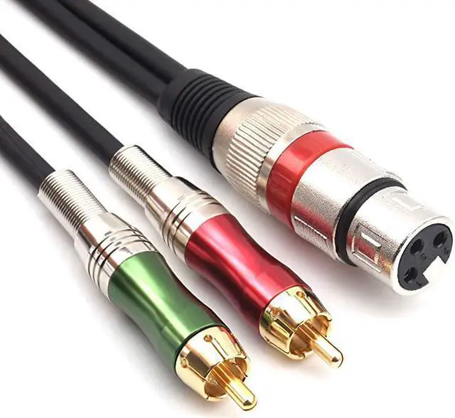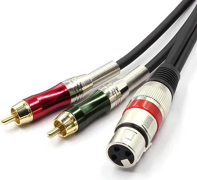 Color: 2RCAM-XLRF (3m) XLR Female Plug to 2 RCA Male Stereo audio Cable Wire Cord Connector for mixing consoles, microphones to recorders or amplifiers (10 FT) Scope of use -For connection and signal transfer among mixing consoles, microphones, recorders, amplifiers, sound card, loudspeaker. -This Audio Link Cable XLR Female to Two RCA Male, Ideal for connects audio devices with the XLR audio port to AV receiver, amplifier, home theater system, computer sound, recording equipment, Hi Fi stereo audio system, speaker, TV, CD, DVD, mixing console, and more. -It can connect a microphone to an audio device and a home theater device Etc. Use it to connect anywhere between XLR and RCA that needs to be connected for audio transmission.