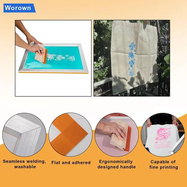 Features: Light-weight aluminum frame and wooden handle squeegee is easy to operate by hands, fine wire mesh ensures penetrate ink well, rubber scraper is soft and tough