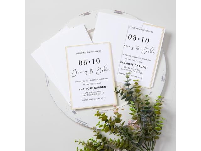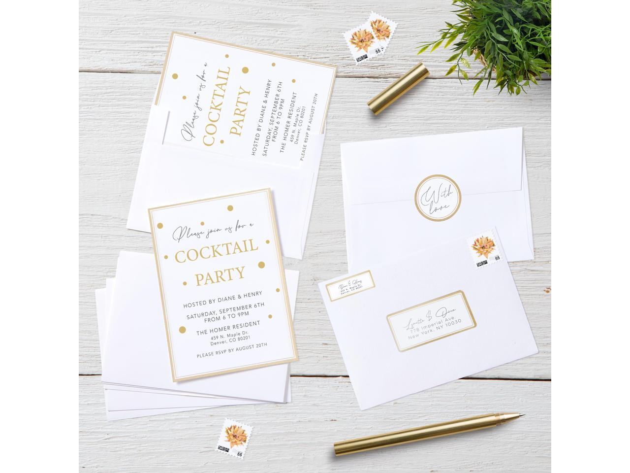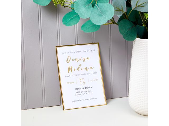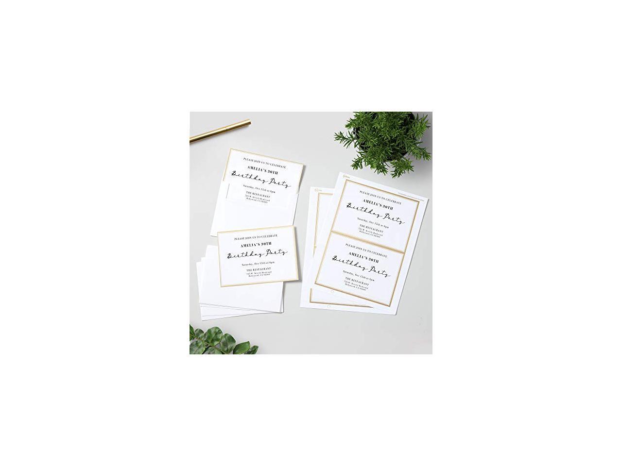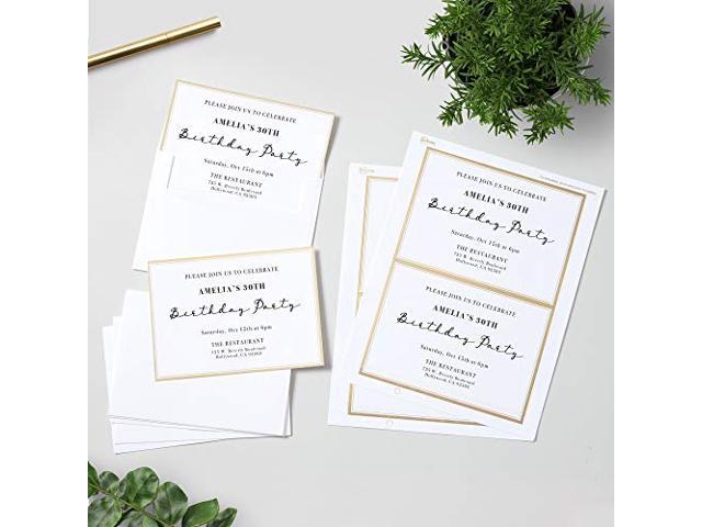 - Add an elegant touch to invitation cards, holiday cards, or any greeting cards with eye-catching matte white invitations with metallic gold borders