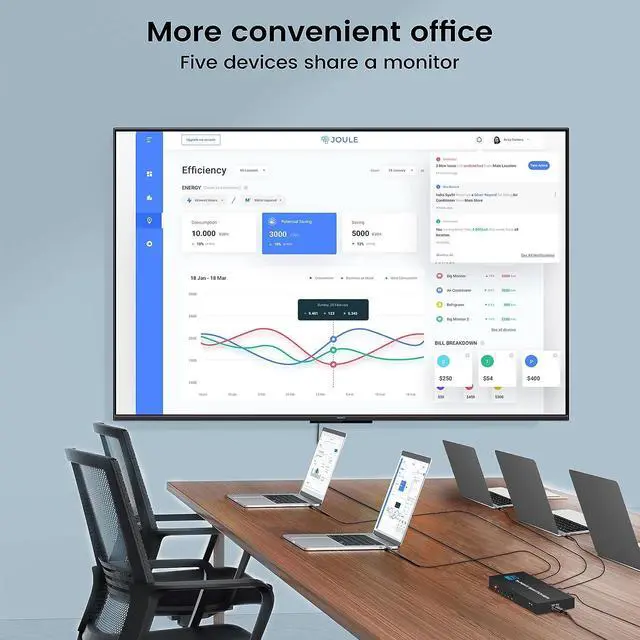 HDMI Switch 5 in 1 out: This 5 Ports HDMI Switch can allow 5 different HDMI sources devices to 1 HDMI device monitor,like HD TV, projector. NO lag, NO flash, or drop in resolution. HDMI hub also can be powered, which will make your transmission more stable .Perfect for home, office, meeting and other scenario. (Not 1 In 5 Out)