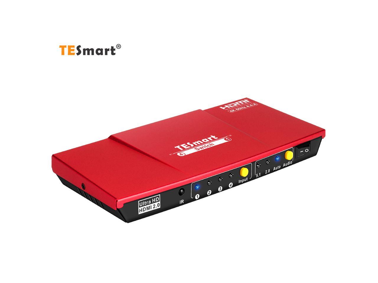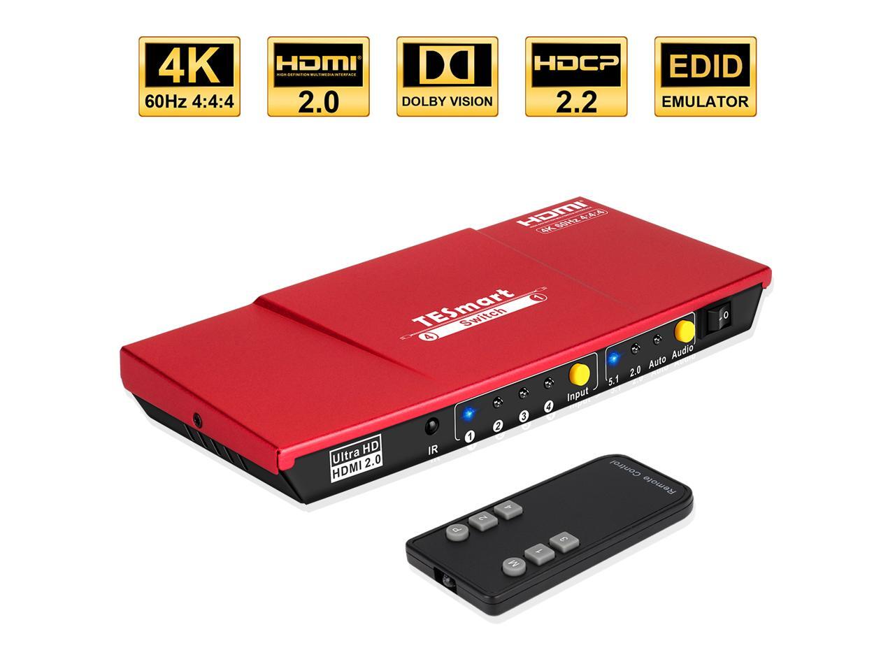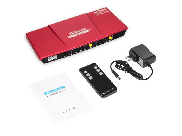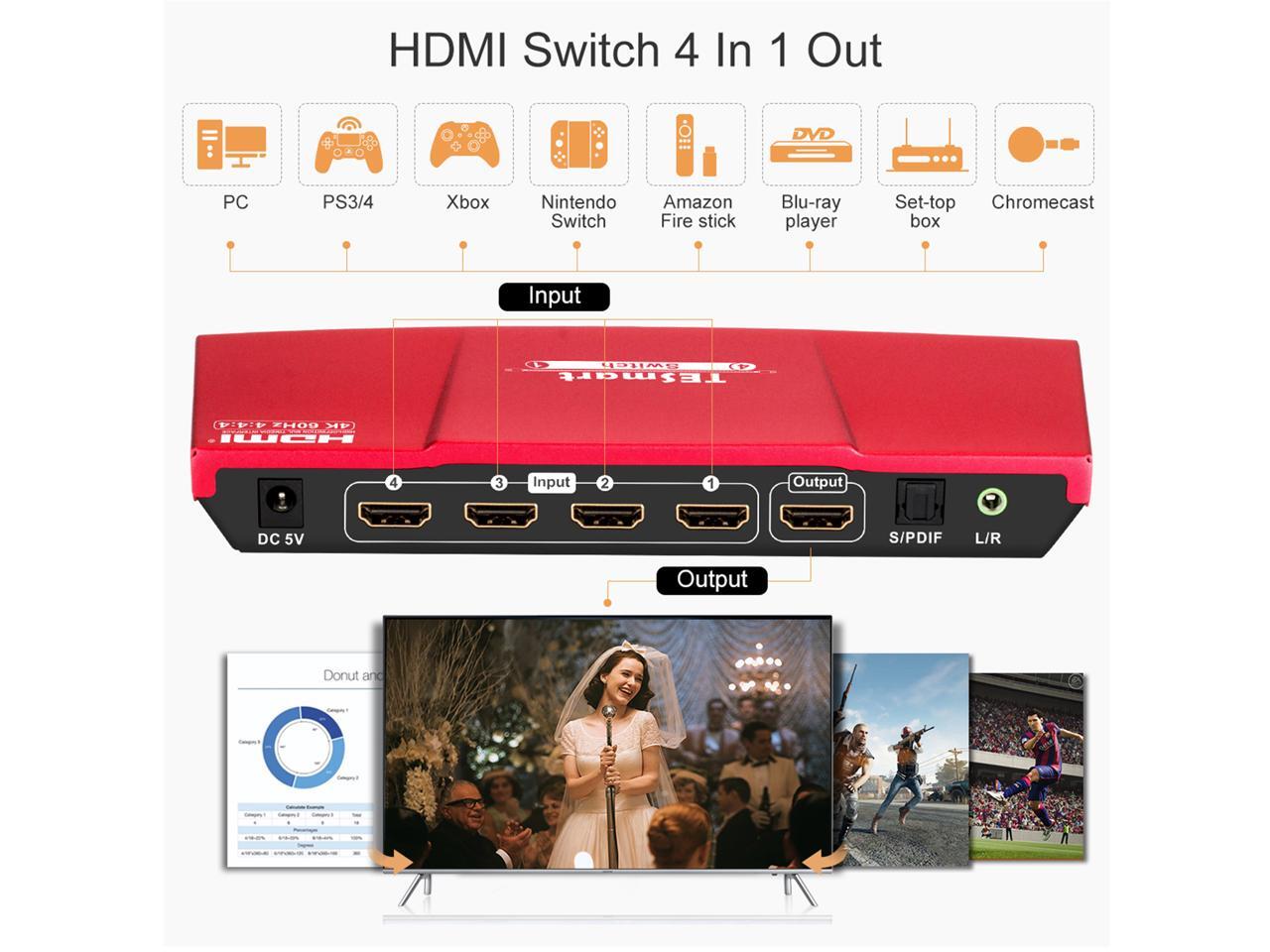 TESmart 4x1 HDMI Switch supports Ultra HD 4K@60Hz 4: 4: 4, 4-port HDMI switch with audio output and IR remote control, HDR, 3D, For Xbox 360/One, PS4/PS3