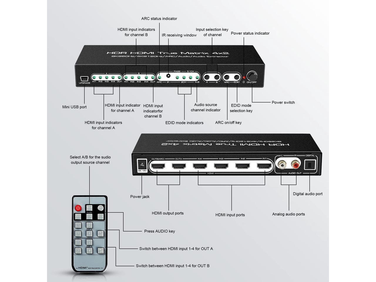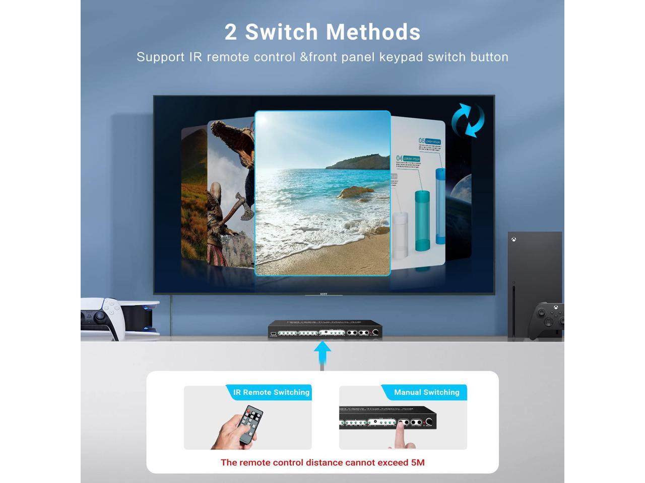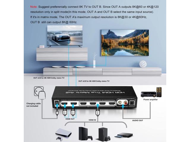 - Plug and Play: Just plug in a 6-12V power supply and connect your HDMI devices via HDMI matrix 4k 120hz.