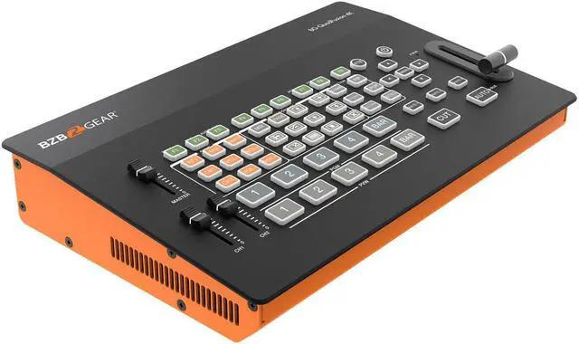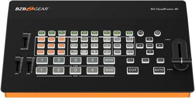 Introducing the BG-QuadFusion-4K: A Feature Packed 4K UHD 4-CH Video Production Switcher. The BG-QuadFusion-4K is a versatile video production switcher designed for professional broadcast and TV stations. This switcher offers comprehensive control options, including keyboard-based special effects and transitions, intuitive menu display functions, and a camera joystick for precise camera control. It supports up to 4-CH HDMI/DP (DisplayPort) inputs 4K60 signals, making it ideal for a wide range of live broadcasting applications, including sports events, concerts, and studio recordings.