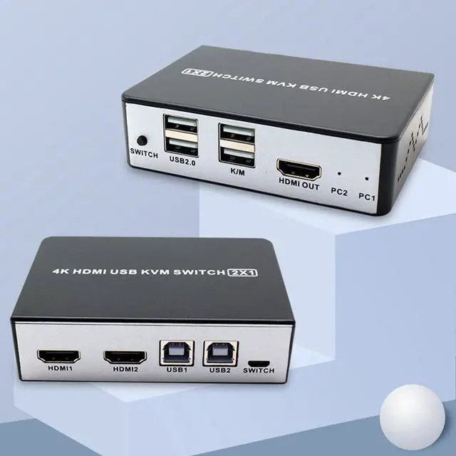 USB KVM SWITCH Support Hotkey Switching,4K/60Hz KVM Switcher 2 in 1 Out for Sharing Printer Keyboard Mouse