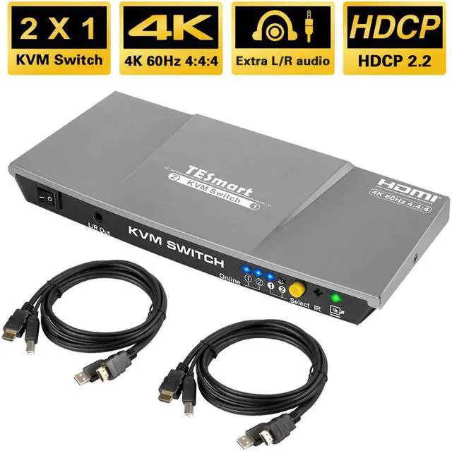 TE 2x1 KVM Switch 3840x2160@60Hz with 2 Pcs 5ft KVM Cables Supports USB 2.0 Devices Control up to 2 Computers/Servers/DVR