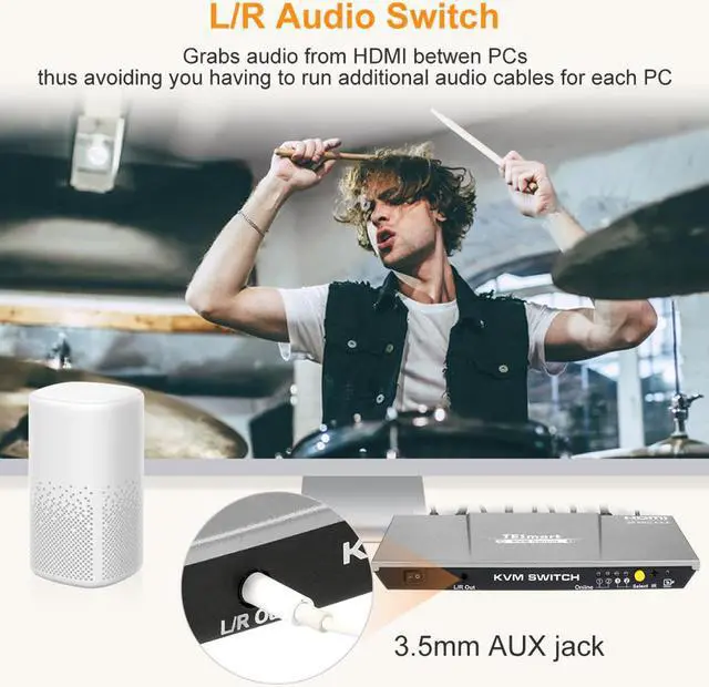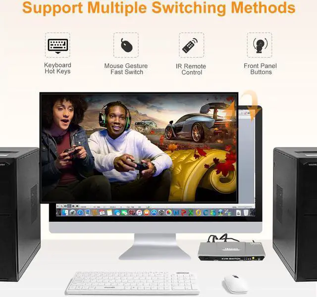4K KVM Switch Output Stable PictureSuperior video quality. 3840x2160 @ 60hz with 4K source and capable monitor. EDID emulation to maintain resolutions and icons when switching