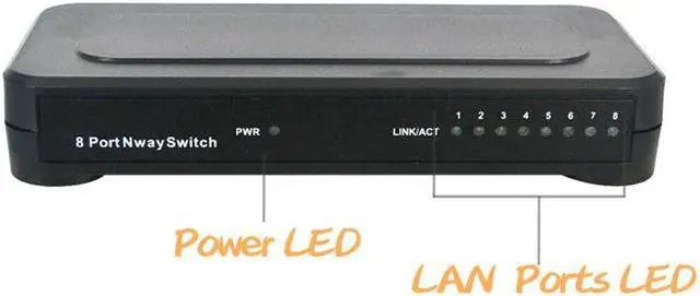 8 * 10/100Mbps / Act Connection / status lights; 1 * power supply lamp