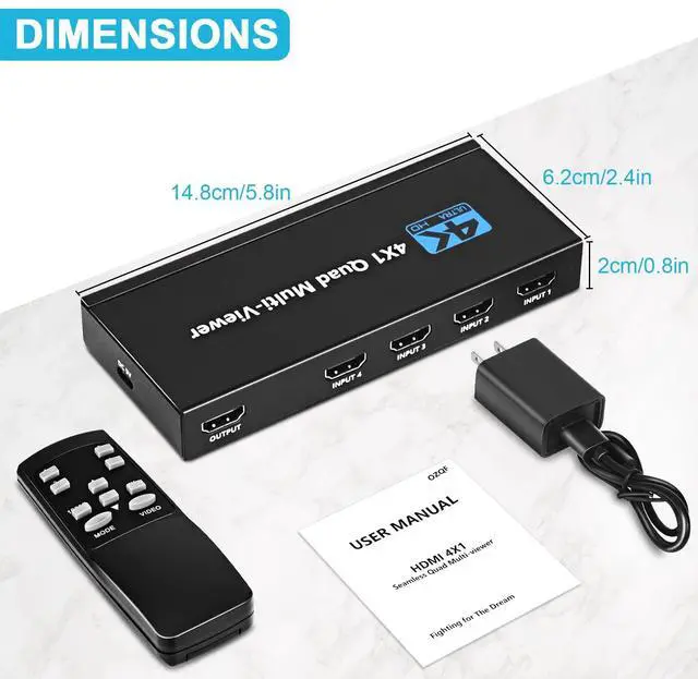 - 1 X HDMI 4x1 Quad Multi-viewer