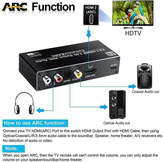 Connect your TV HDMI (ARC) Port to this switch HDMI Output