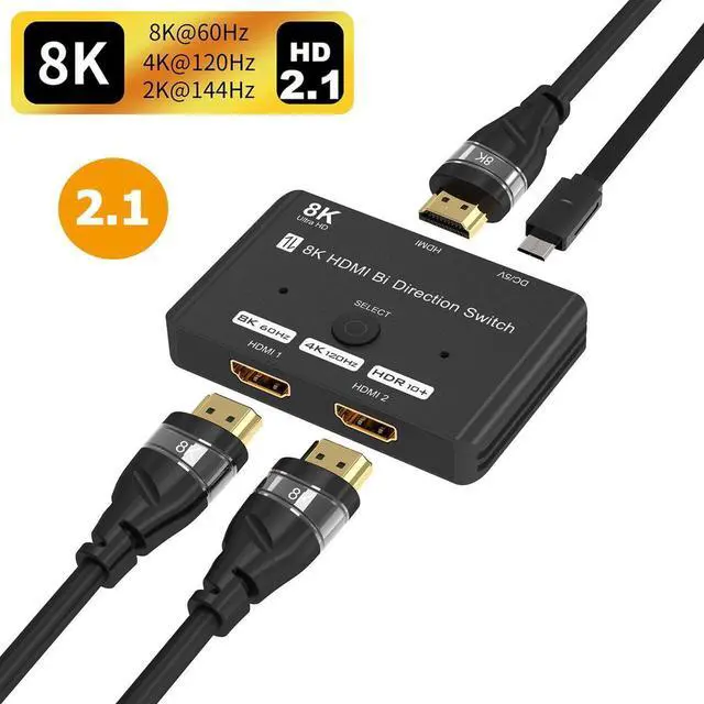 HDMI 2.1 Bi-Directional Switch 8K 60Hz 4K 120Hz HDMI Switcher Adapter 2 in 1 Out Converter Splitte For PC TV PS4 Xbox PS5 Projectors