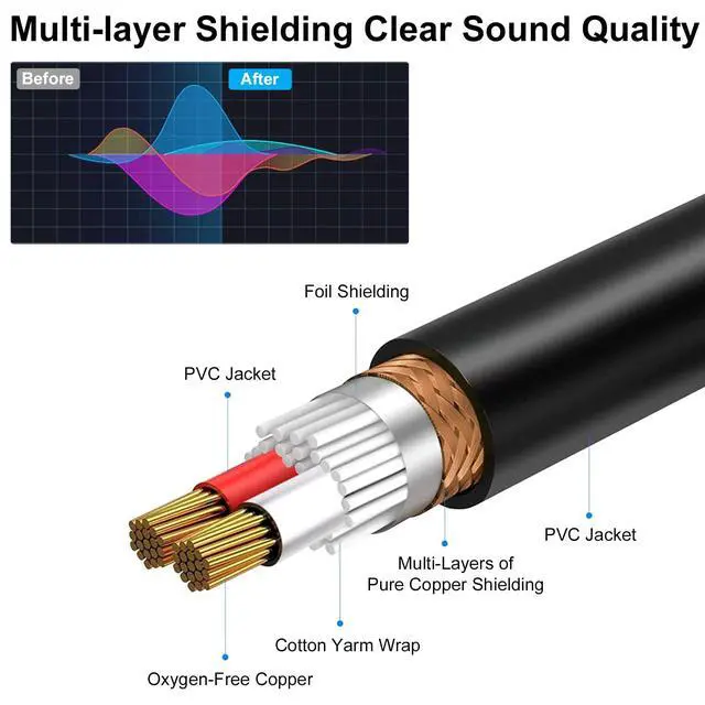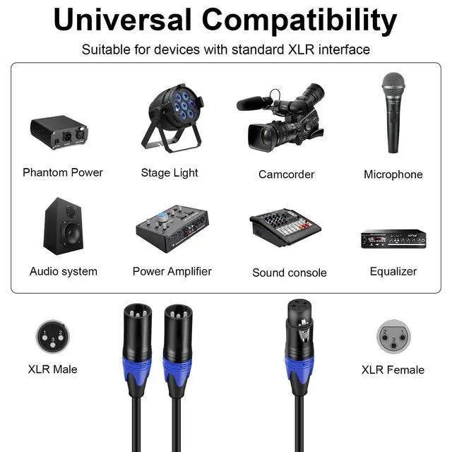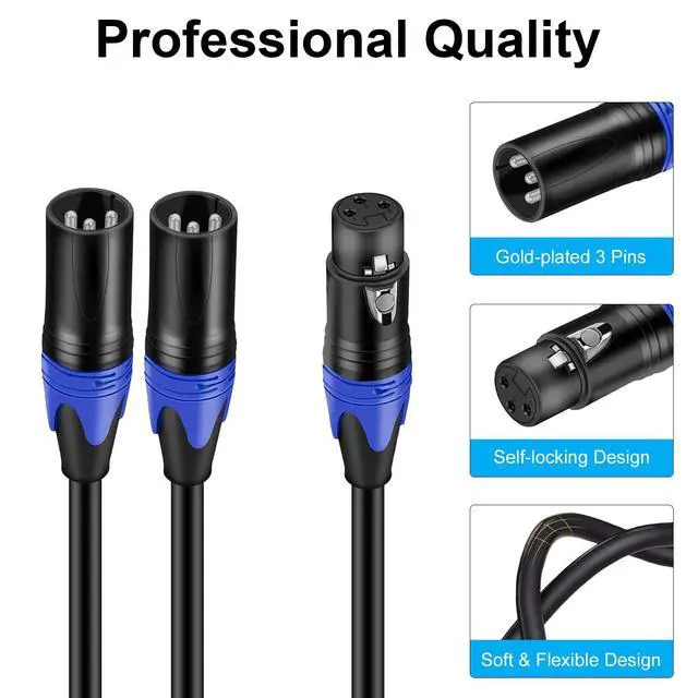 Quality SoundThis XLR Y Splitter Cable use 24 AWG Oxygen Free Copper with double shielding and Polyethylene insulation to improve high-frequency response, ensure high fidelity sound quality, eliminates interference, delivers pristine sound, No hum, no noise. High-quality noise-free performance.