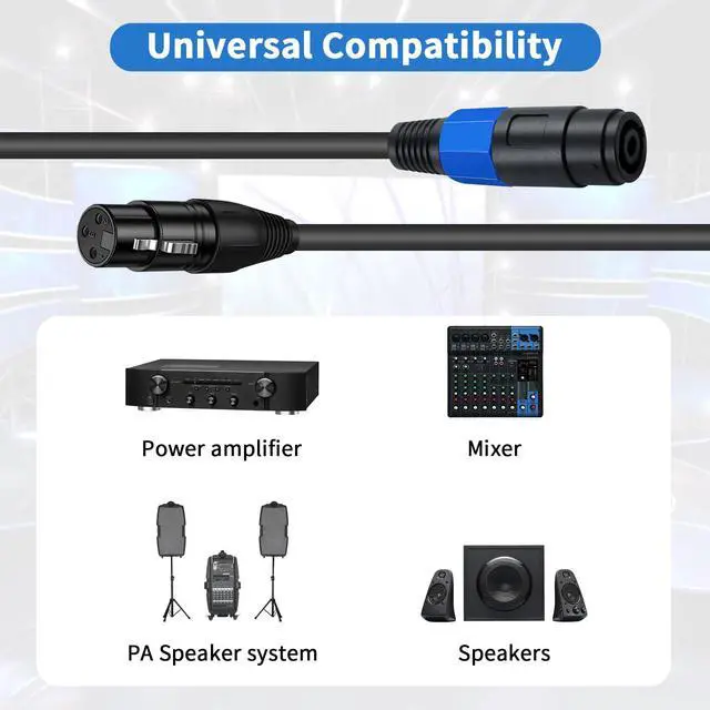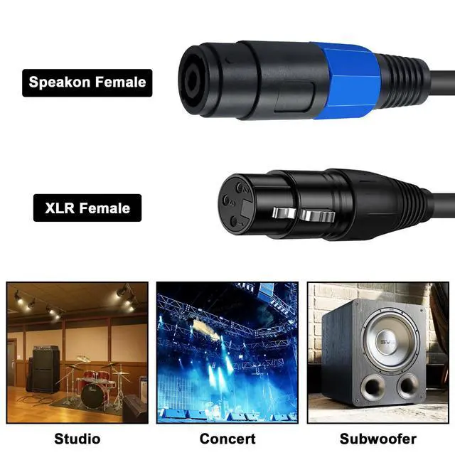 Speakon Female to XLR Female Cabledesigned to extend a balanced XLR Male Plug to a balanced Speakon Male Plug. and the SpeakOn type plug with accurate and dependable twist lock latching system "Quick Lock", being capable of carrying high current. 3 Ploe female XLR ConnectorConenct the Heavy-duty sealed XLR connector and speakon adapter for harsh and demanding environment. the contact points enhance your system's overall technical and economic efficiency.