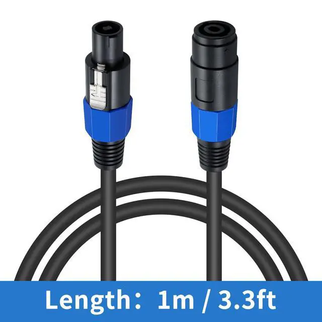 Speakon to Speakon CableThis Speakon cables has connector 1: Male Speakon Plug and connector 2: Female Speakon Plug; the Cable Length: 1m/ 3.3ft. 18 Guage AWG of professional 1.6mm² Copper Wire Audio Cord is perfect for both professional and casual users. Speakon Male to Female CableFeaturing speakon speaker cable is made of Premium PVC-85P and Full Copper Wire, and use a robust plastic housing, a unique locking principle and touch proof contacts, which are good for operating in high current, inductive load environment of loudspeakers.