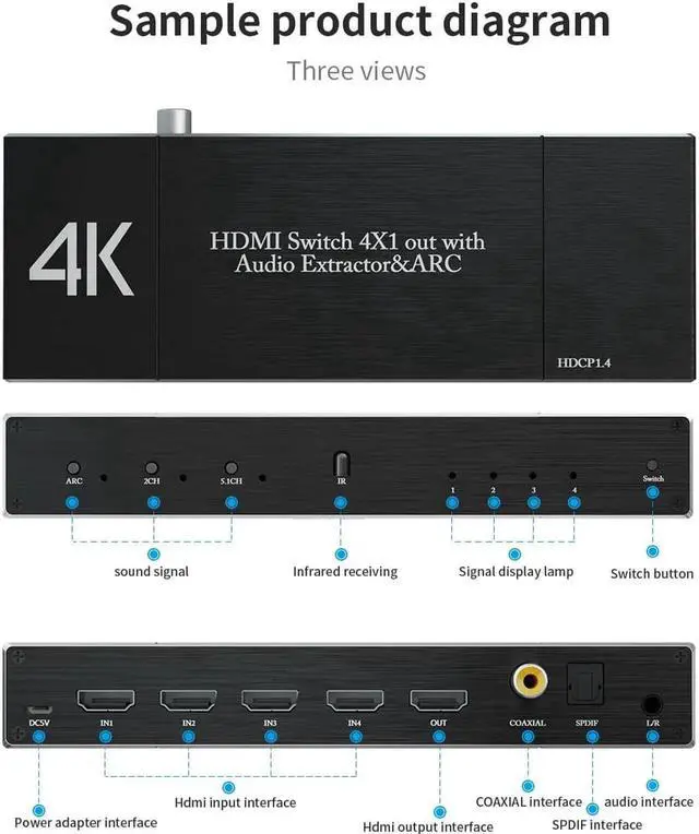 This HDMI Switch support 4 HDMI Inputs to 1 HDMI Output, can be applied for connection, signal amplification, multi-picture conversion and for selection between computer/PC, STB/Smart Box, DVD Player, Blue-ray Player, PS3/PS4 Pro and LCD TV,LCD,Projector, as well as an Audio/Video receiver.