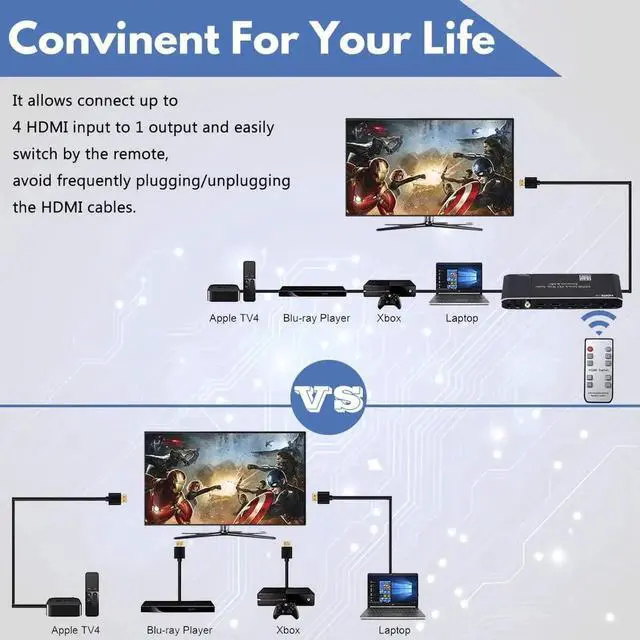 Support HDR 4K HDR10 Wide Applicability: Compatible with any HDMI devices such as Nintendo Switch, PS4 Pro, Xbox 360, Xbox One X,PS3, Beamer, DVB Receivers, Blu-ray Player, Apple TV 4, Laptop and HDTV/HD Monitor etc.