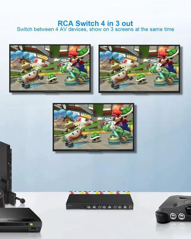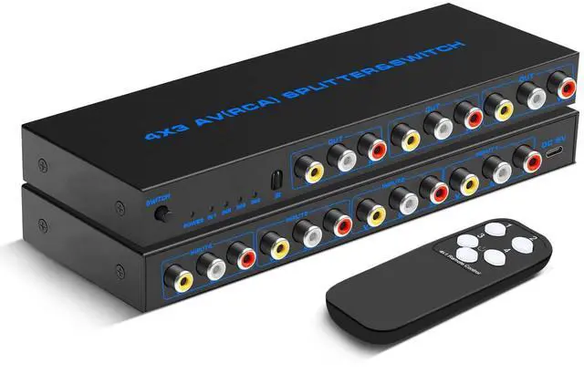 [Wide Compatibility & Customer Service]This Rca distribution block works with all RCA/Av devices, such as Wii, XBOX, DVD, PS2, Nintendo64, and SNES. If you have any concerns or questions about our 4x3 RCA Splitter & Switch, please feel free to contact us. We will try our best to solve all your problems.