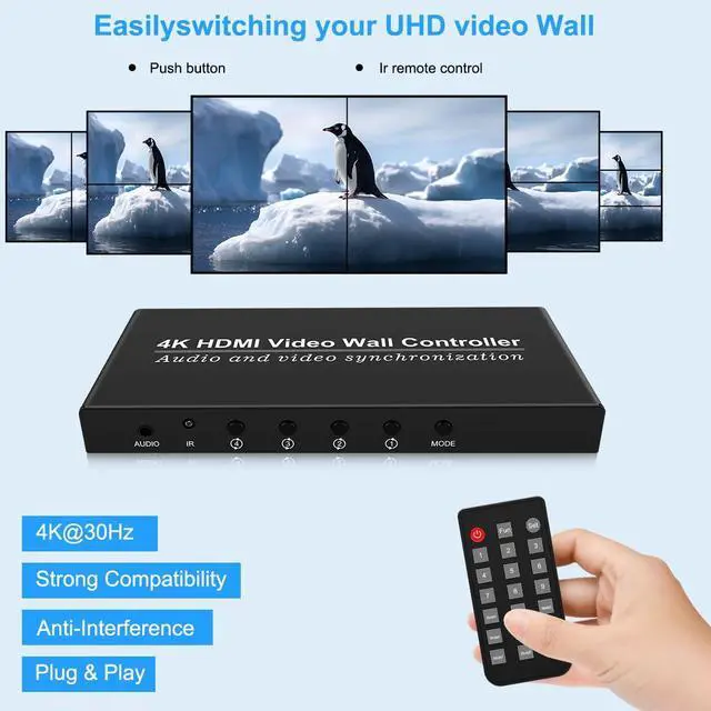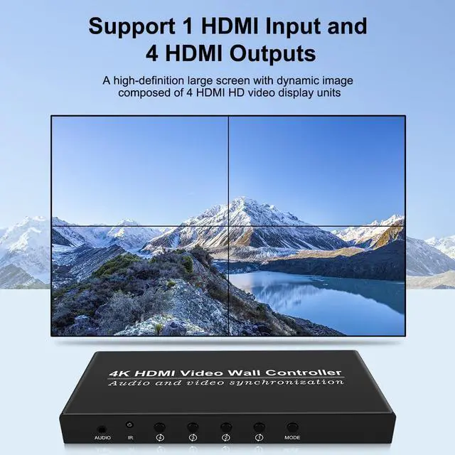 This 4K Video Wall Controller is a professional video wall processor to distribute a complete HDMI image signal to into 4 blocks and assign to 4 video display unit (such as Rear projection unit, LCD TV, etc.) for splicing display. Complete with 4 HDMI high-definition video display units to form a large dynamic image screen. Allows you to Enjoy high definition visuals.Widely used in Traffic command center,Exhibition, multimedia teaching,Large-scale game,video conference,Security Monitor Shopping mall and other places.