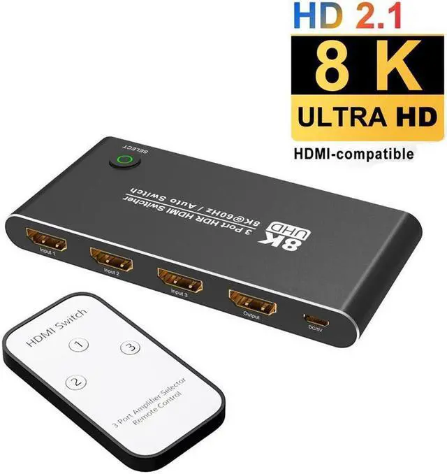 plug-and-play: HDMI 2.1 switcher is compatible with most standard HDMI devices.