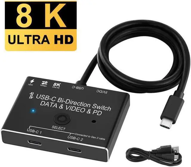 IXJYLCPC 4K@120Hz 8K@30Hz Type-C 8K Bi-Directional Switch Splitter 1in 2out 2in 1out Converter Support Video Data PD 8K@30hz 100W 10Gbps