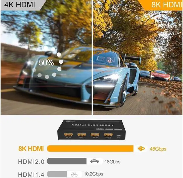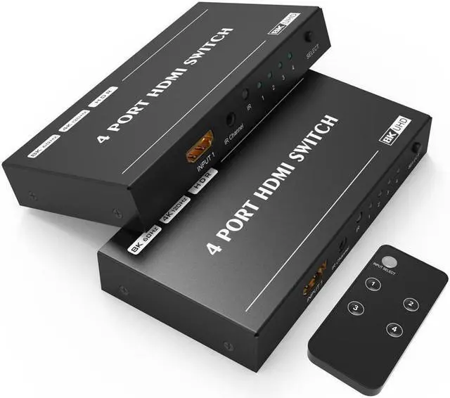 HDMI Switch is a 4 port HDMI 2.1 8K HDMI switcher for your latest gaming and home theatre setup. It supports 4 HDMI inputs and 1 HDMI output, allowing for HDMI 2.1 b and HDCP 2.2, along with 8K 4k Ultra HD and compatibility on all HDMI.