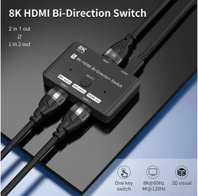 Bi-Direction 1in 2out 2in 1out HDMI 2.1 Switcher 8K@60Hz4K@120Hz Switcher/Splitter