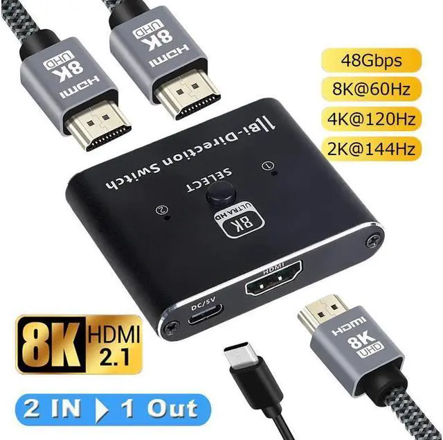 · This is a 2 in 1 out switcher, and 1 in 2 Out a HDMI Splitter (2 Output CANNOT display simultaneously).