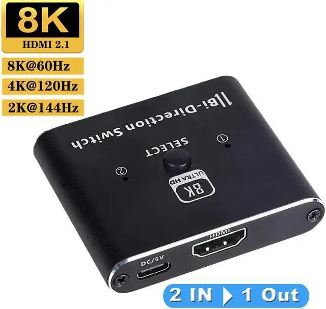 · This is a 2 in 1 out switcher, and 1 in 2 Out a HDMI Splitter (2 Output CANNOT display simultaneously).