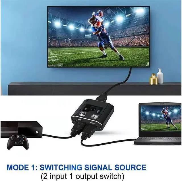 4K@60Hz 1080P@120Hz HDMI Bi-Directional Switch can connect two HDMI sources like blu-ray player and PS3, PS4, PS4 pro, PS5 etc, to a single HDMI display like HDTV. Besides, it also can switch one signal source to two displays(just like 1*2 splitter, but it is different that the 2 displays can not work at the same time).