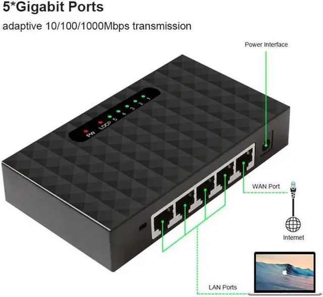 Introduction:5-Port Gigabit Desktop SOHO switch. It provides 5 10/100/1000Mbps auto-negotiation ports, which you can