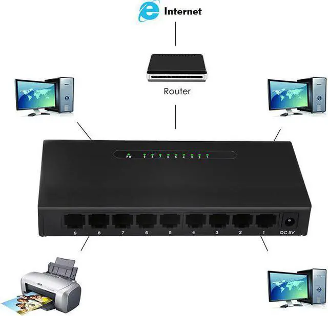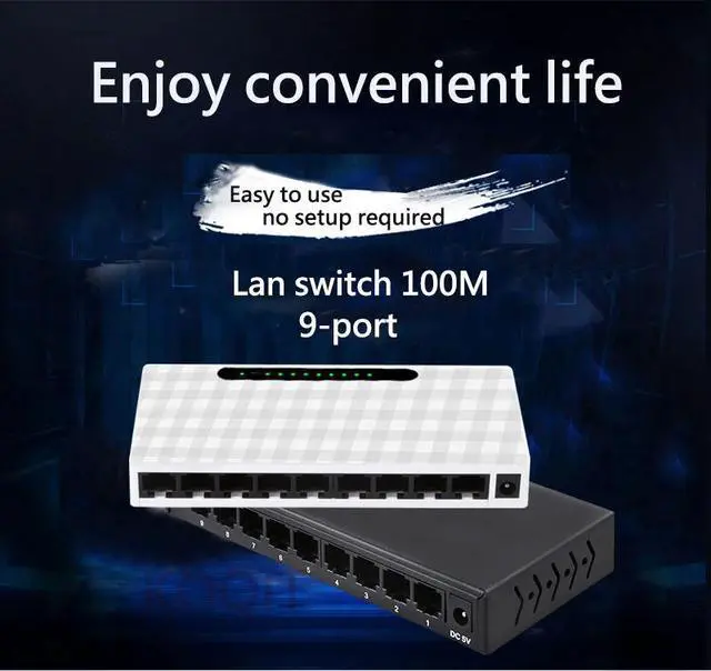 This is multiport swtich and is the perferct choiceto upgrade your network to 100Mbps .it provides you with a high-performance ,seamless,low-cost and esay-to-use 100mbps network,ideal for multimedia ,graphics,HD video and other application that require large tansferring allloction .all nine ports support auto-negotiation and auto-MD/MDIX eliminating the need for cross over cables . connection speeds are automatically detected .the 9 ports destop switch is compatible with any 10/100mbps ethernet device .