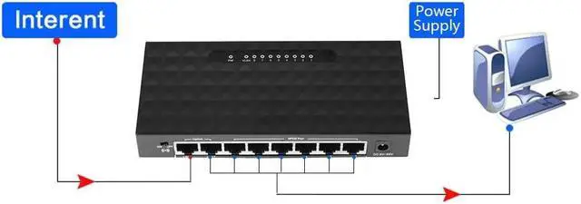 8 Port 10/100 Mbps POE Ethernet Network Switch Lan Hub Ethernet Smart Switcher Support 6-55V Power Supply