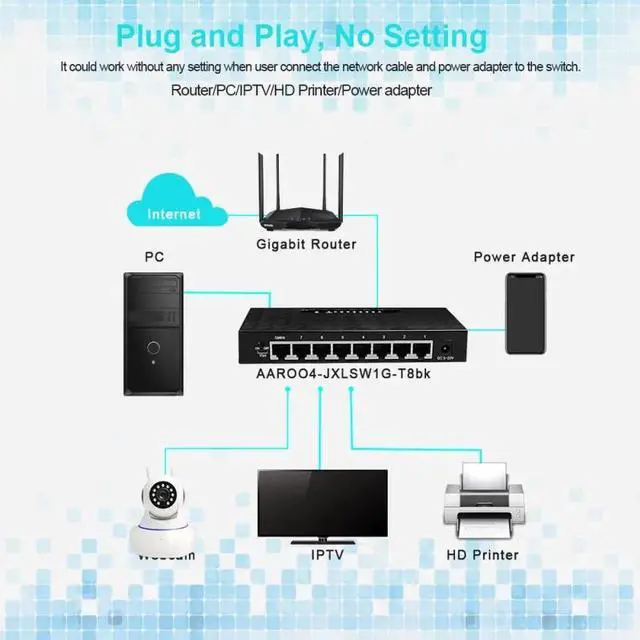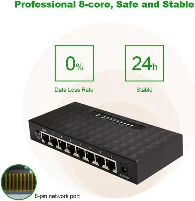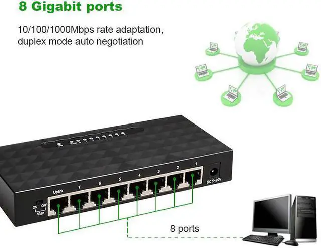 Network 8 Port Gigabit Switch 10/100/1000Mbps Fast Ethernet Switcher Lan Hub Full/Half duplex Exchange Ethernet Smart Switch