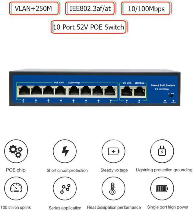 8*10/100mbps POE port;2*10/100mbps UP Link port