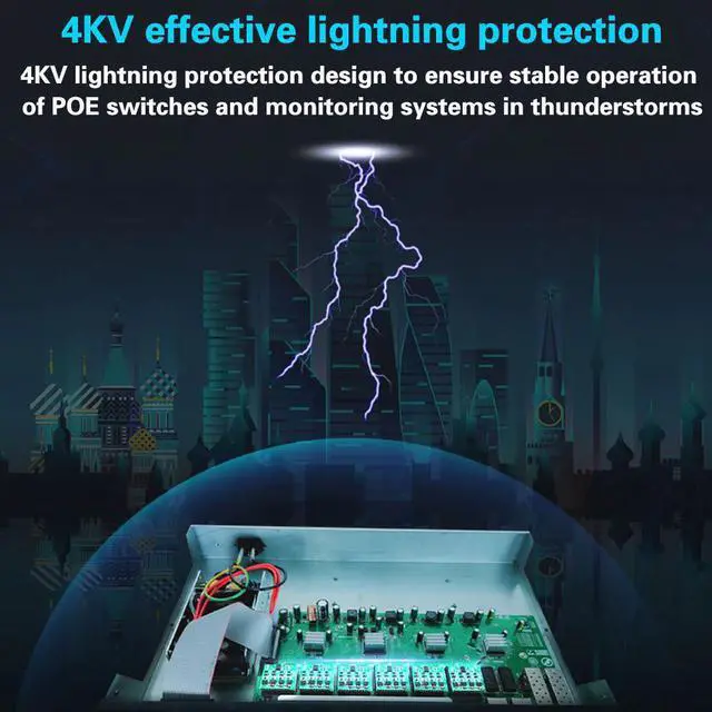 4KV lightning protection design to ensure stable operation of POE switches and monitoring systems in thunderstorms