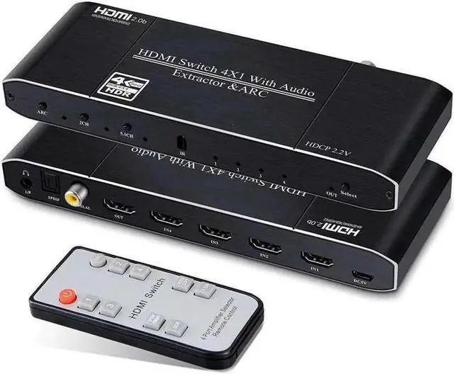 4x1 HDMI Switch with Audio Extractor 4 Port 4K 60Hz HDMI Switcher HDMI Audio Converter Include IR Remote and ARC,Coaxial audio,3.5mm Jack & optical Toslink SPDIF for Xbox Fire Stick PS5