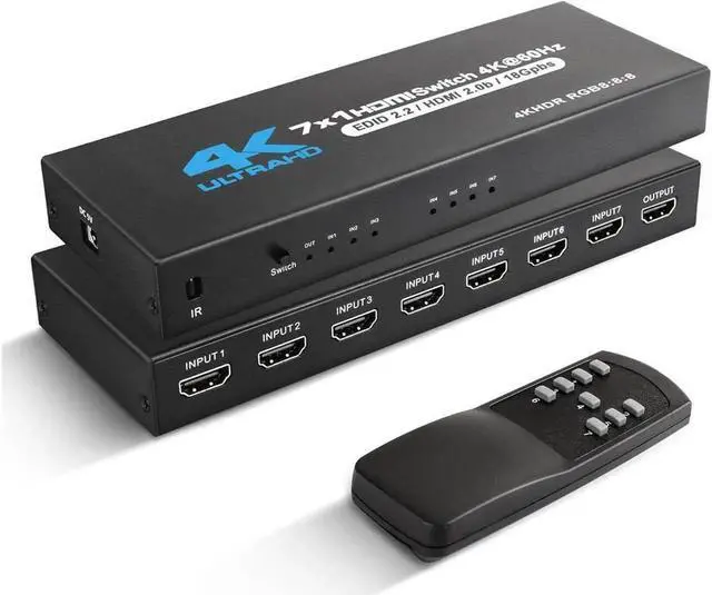 4K Ultra-HD Experience: 7 in 1 out HDMI Switch support bandwidth 18Gps/600MHZ, HDCP 2.2, HDR, Dolby Vision, 4K