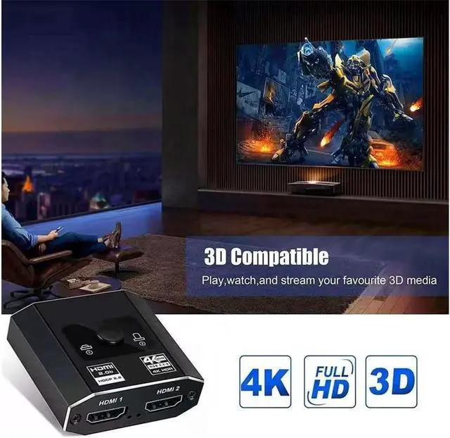 • 4K@60Hz 1080P@120Hz HDMI Bi-Directional Switch can connect two HDMI sources like blu-ray player and PS3, PS4, PS4 pro, PS5 etc,to a single HDMI display like HDTV. Besides,it also can switch one signal source to two displays(just like 1*2 splitter ,but it is different that the 2 displays can not work at the same time).