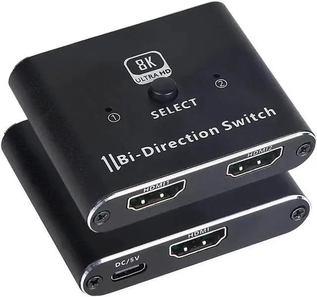 Out: The HDMI switcher allow you to connect two HDMI sources to one HDMI display (Switcher). You can switch the HD sources very conveniently by using the easy-click switch button on the unit. Or 1 signal source to 2 display (CANNOT display simultaneously), it will help you expand HDMI 2.1 ports on your TV, NO delay and no screen flickers.
