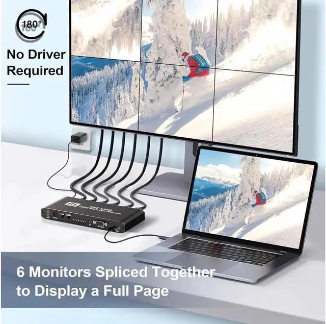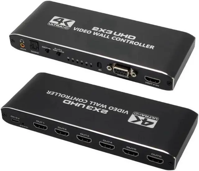 Video Wall Controller 2x3: Video wall supports 1 channel HDMI input, 6 channels HDMI output signal supports 1x1, 1x2, 1x3, 1x4, 1x5, 1x6, 2x1, 2x2, 2x3, 3x1, 3x2, 4x1, 5x1, 6x1 multiple splicing Mode, a variety of splicing modes can be selected arbitrarily to meet your various purposes