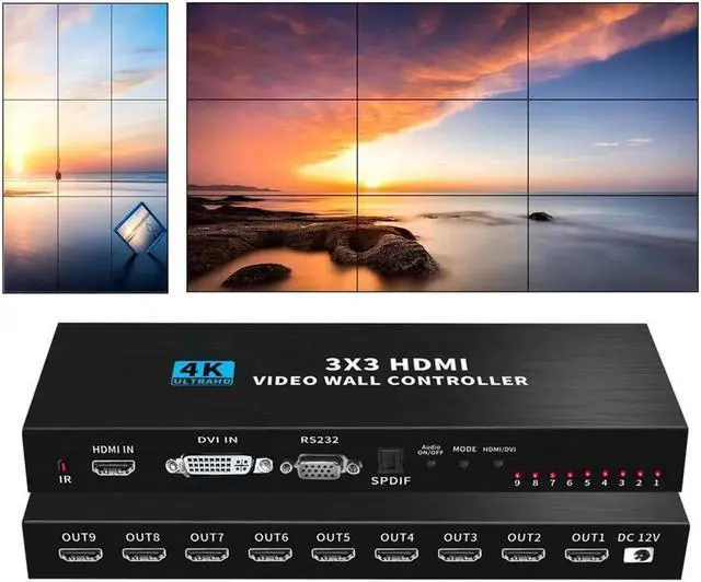 Easy to operate: plug and play, no driver installation. supports 1-way HDMI input and 9-way HDMI output signal, connecting to 9 LCD TV or other display device