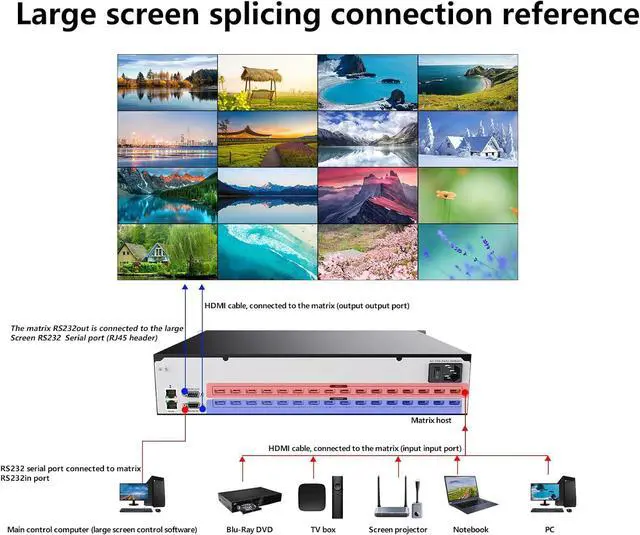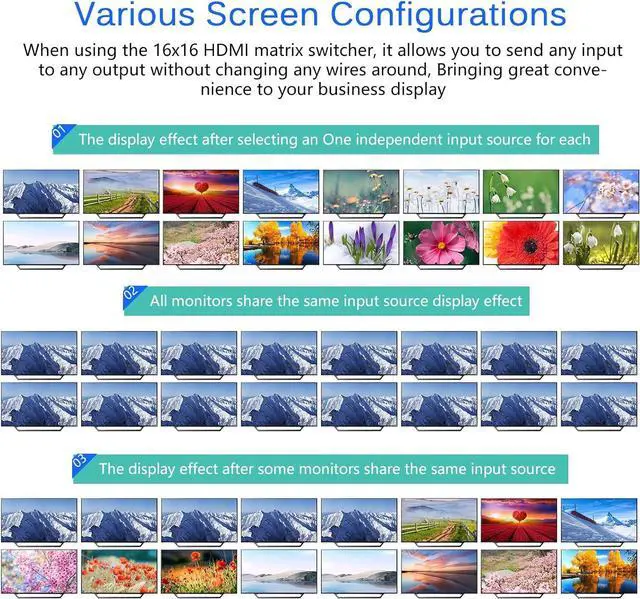 16x16 HDMI Matrix Switch Connection Input/Output Display