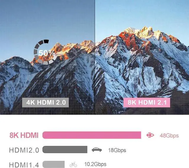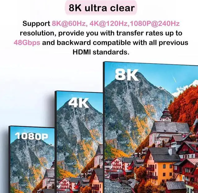 Ultra-High-Definition 8K Resolution: HDMI hub supports 8K@60Hz, 4K@120Hz (4K@165Hz/144Hz), and backward compatible with 2K@240Hz, 1080P@240Hz resolution, provide you with transfer rates up to 48Gbps. Plus VRR, Dynamic