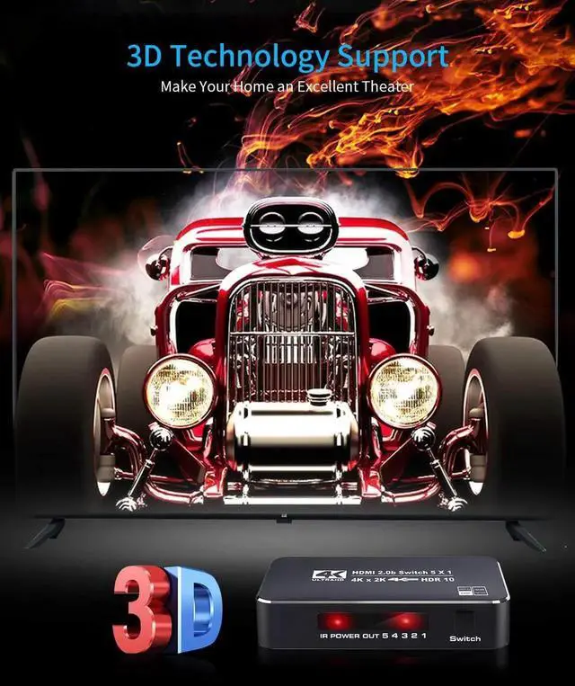 4K HDR and Dolby Vision: The HDMI switch 5 in 1 out 4K@60Hz, HDR, HDR10 2k, 1080P @ 60Hz, 1080P@30Hz, 3D, RGB(