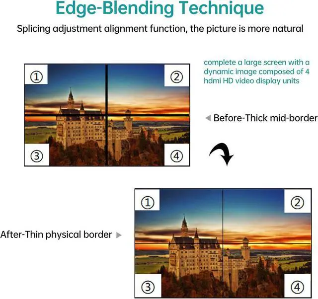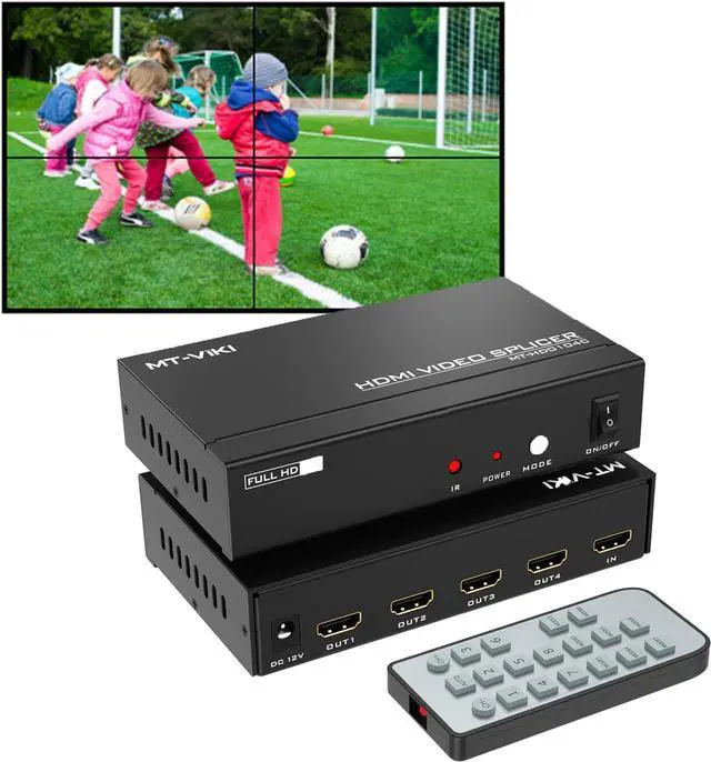 MT-VIKI This 2x2 Video Wall Controller supports 1 HDMI input and 4 HDMI outputs. The main function is to divide a complete HDMI high-definition image signal into 4 blocks and assign them to 4 video display units.